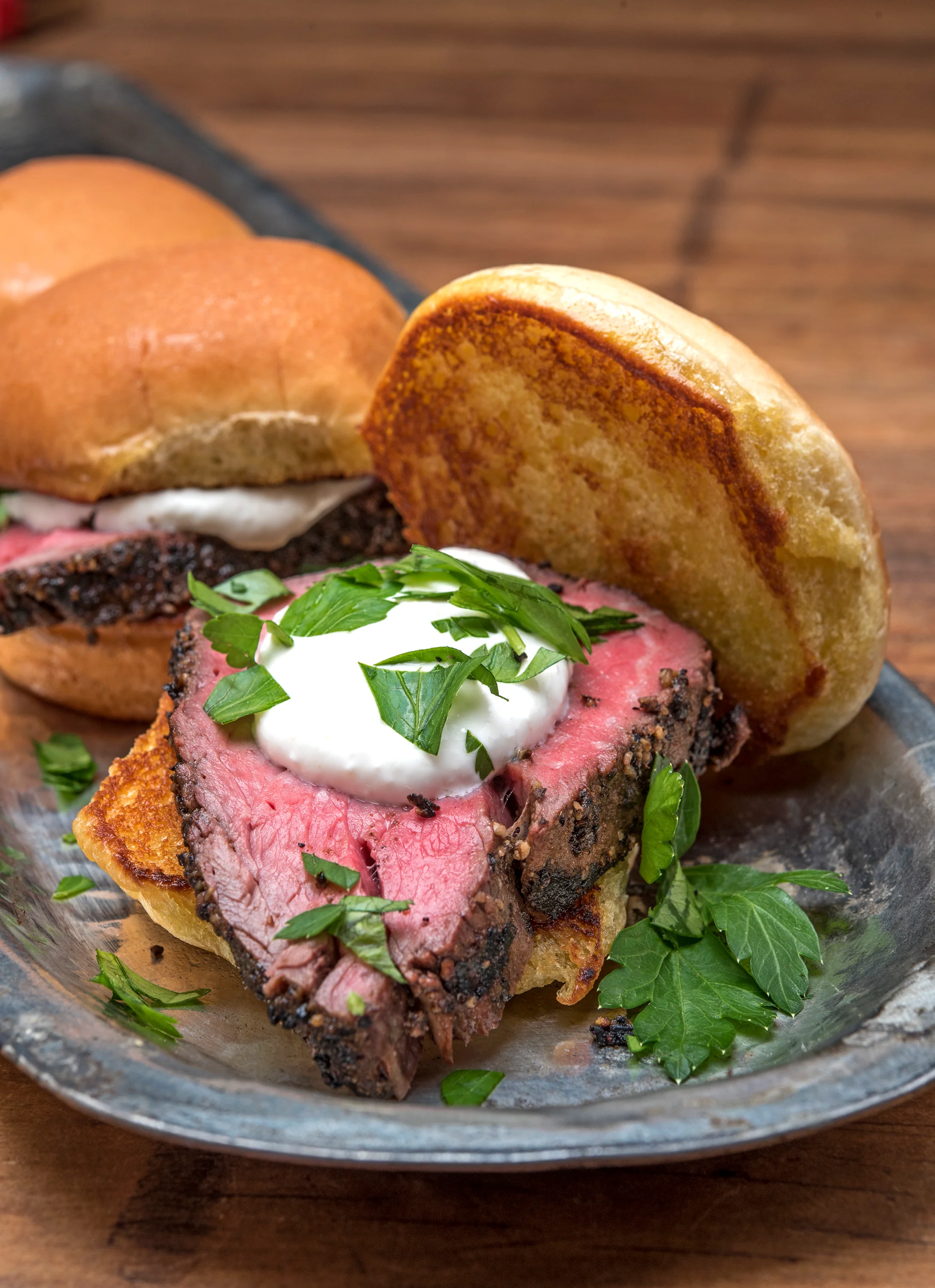 Each tenderloin is individually selected, hand-trimmed, and seasoned with our signature blend of cracked black pepper and herbs. It’s then slow-smoked over mesquite wood, resulting in tender, smoky perfection.